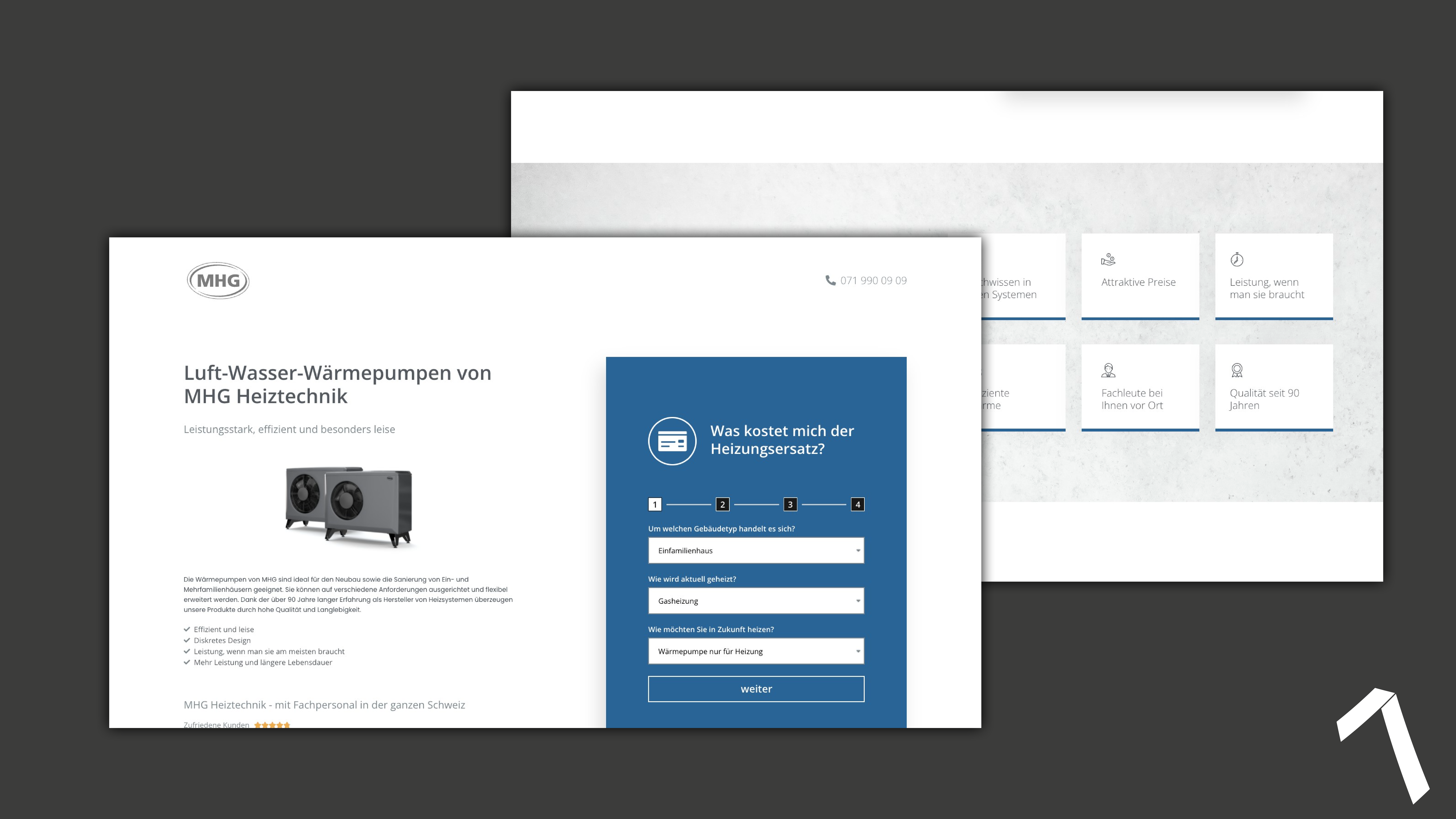Die MHG Heiztechnik (Schweiz) GmbH ist ein unabhängiger Hersteller von hochwertigen Heizsystemen. Wir betreuten die Unternehmung im digitalen Marketing und bewerben von uns erstellte Landingpages mit Google Ads.